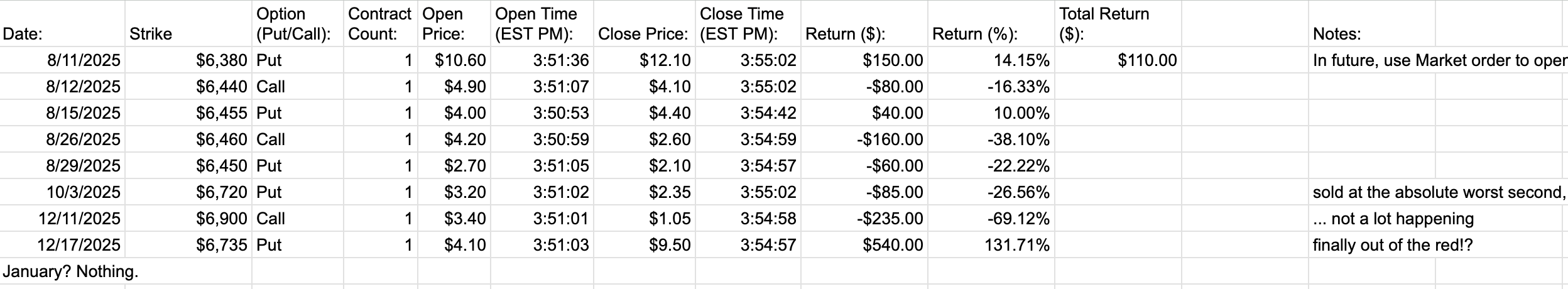January had no 4-minute trades. And I still haven’t found a good “last 5-10 minutes” trade to share yet.