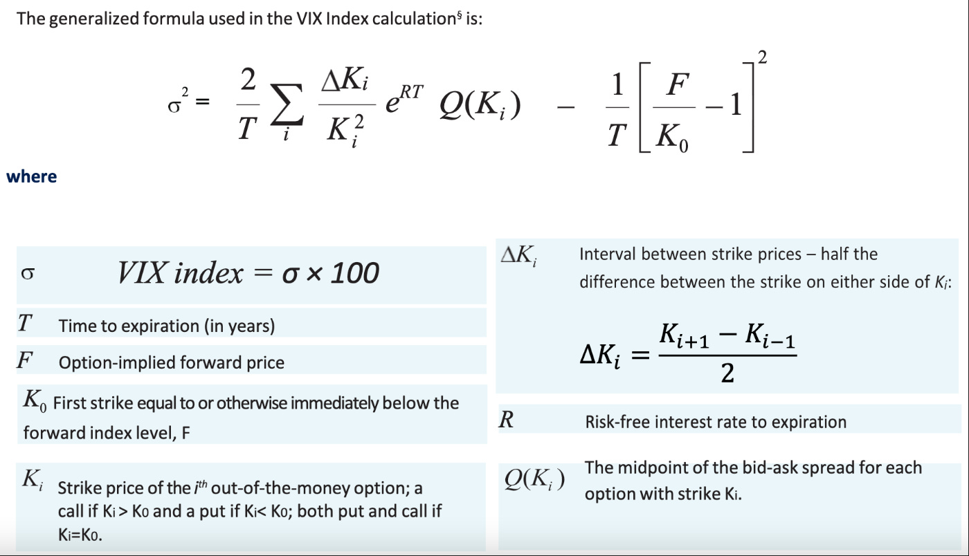 And the VVIX is calculated the exact same as above, except using the VIX as the underlying instead of the SPX [link].